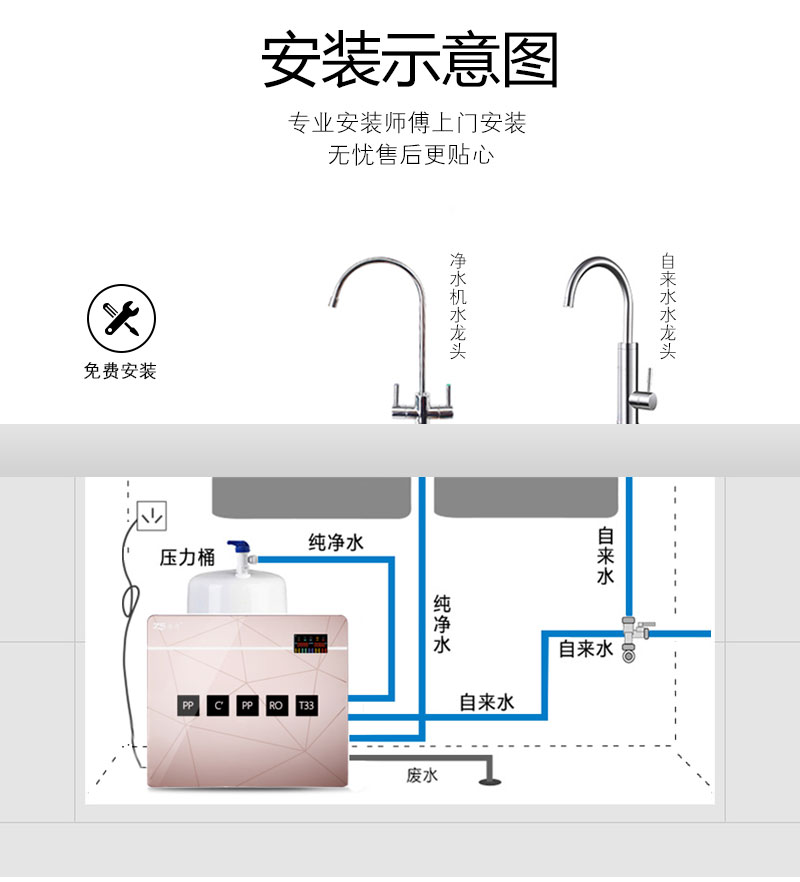 型号:ZS-RO100-B3 紫耀金 RO反渗透净水机