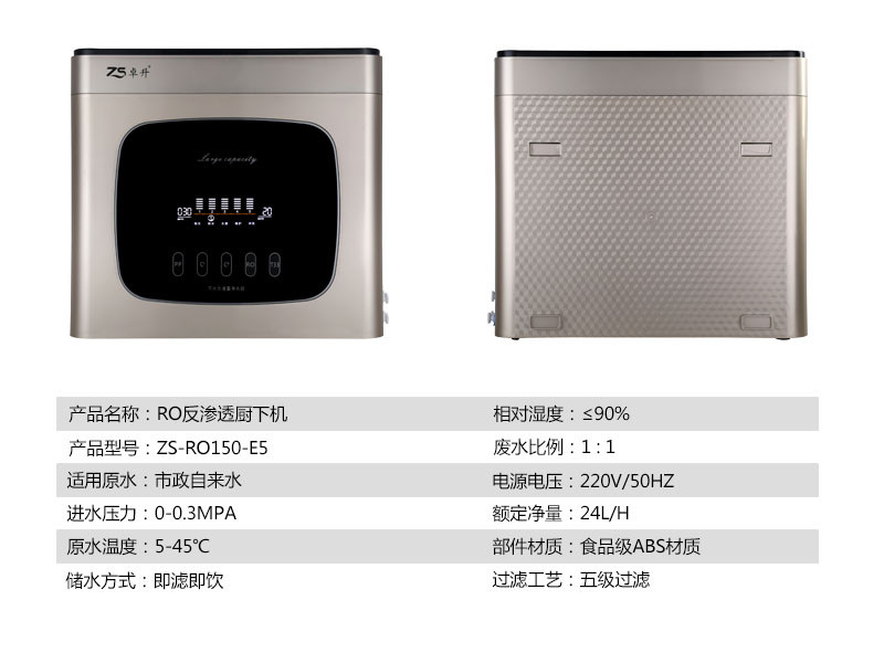 型号:ZS-RO150-E5 尊贵金 RO反渗透净水机