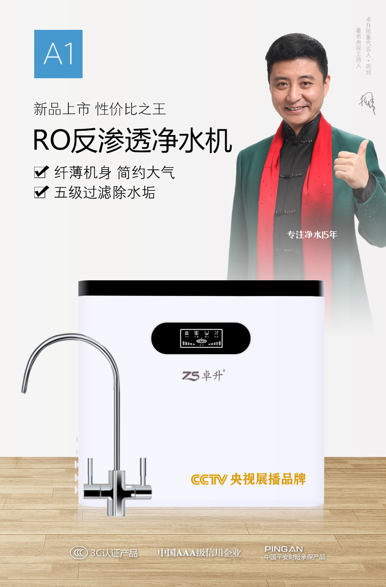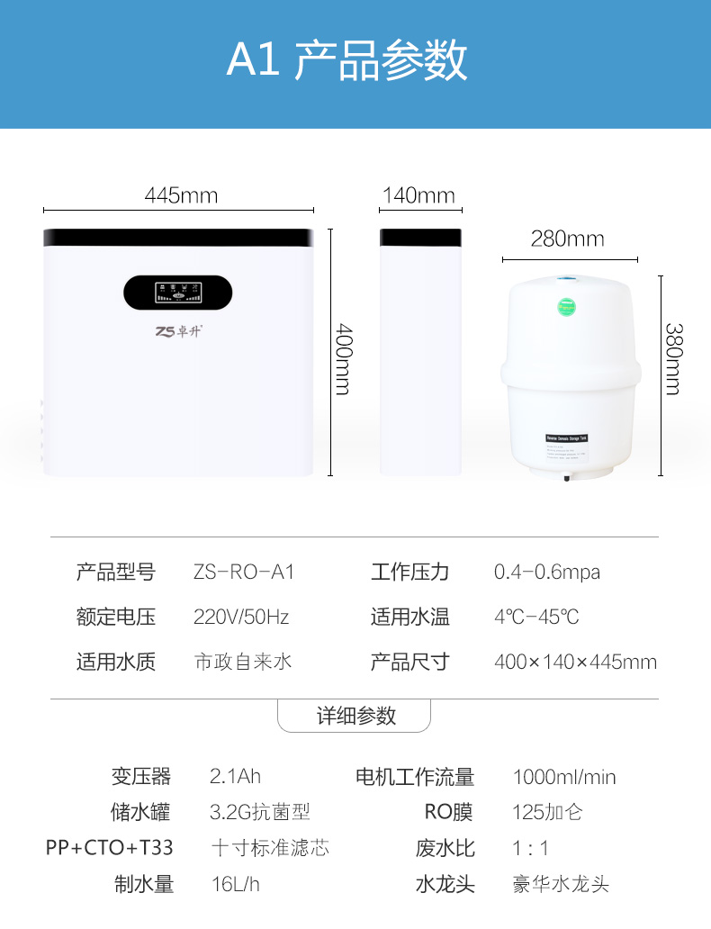 型号:ZS-RO150-A1 月光白 RO反渗透净水机