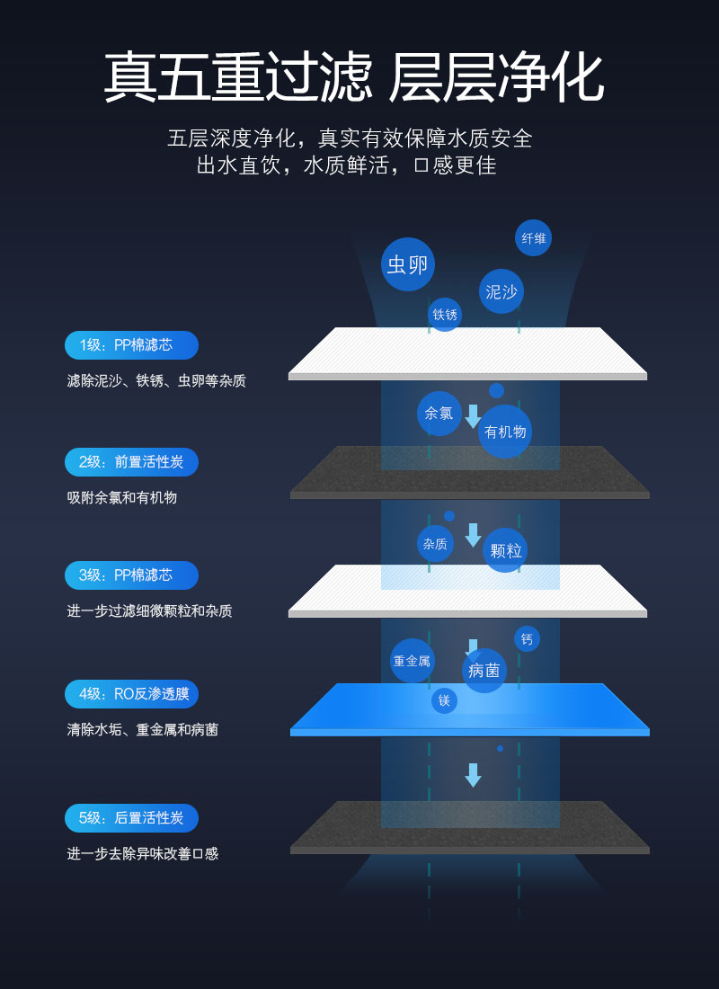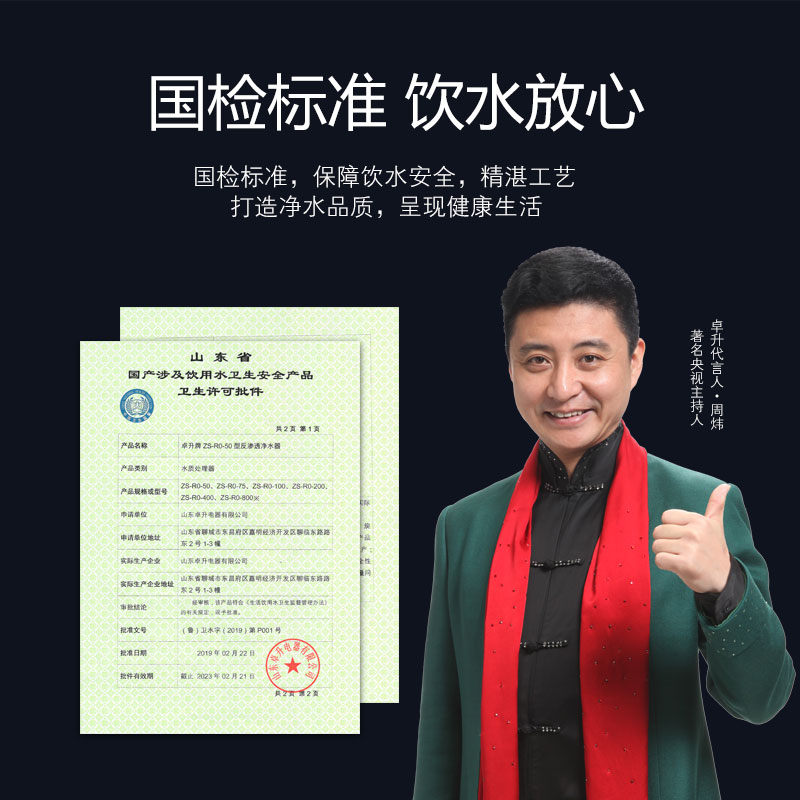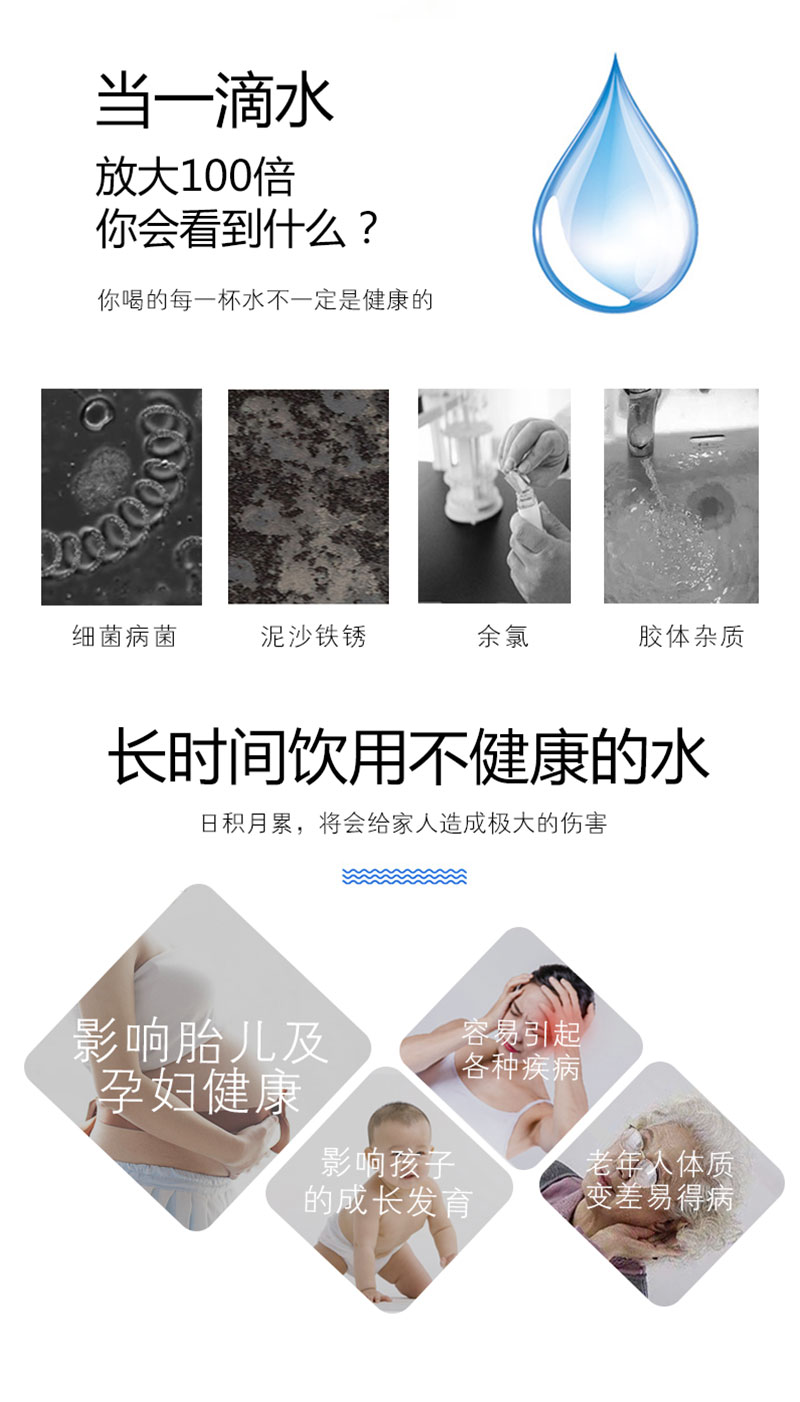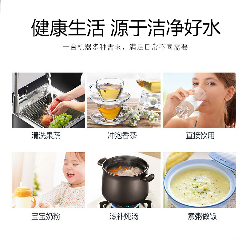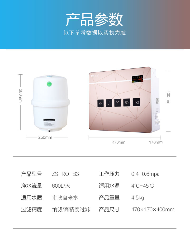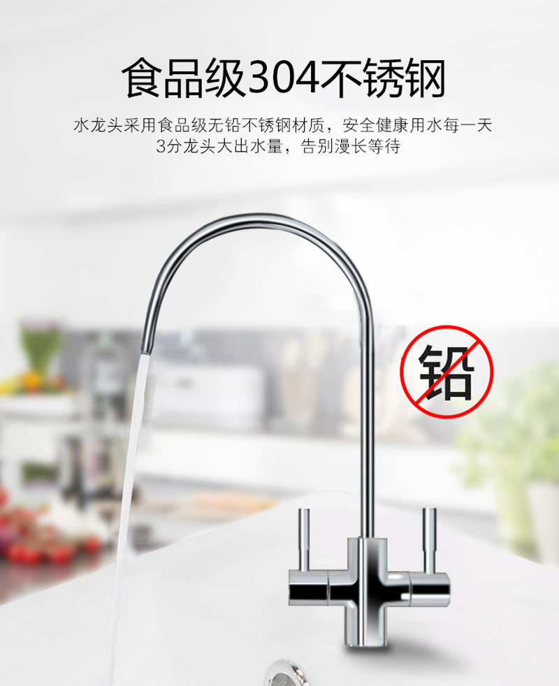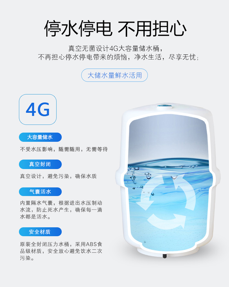 LED显示; TDS值显示; 单/双出水设计; 滤芯更换提醒; 大流量微废水; 外置压力桶; 75G/100G/150G/200G/400G/600G; 食品级ABS材质.