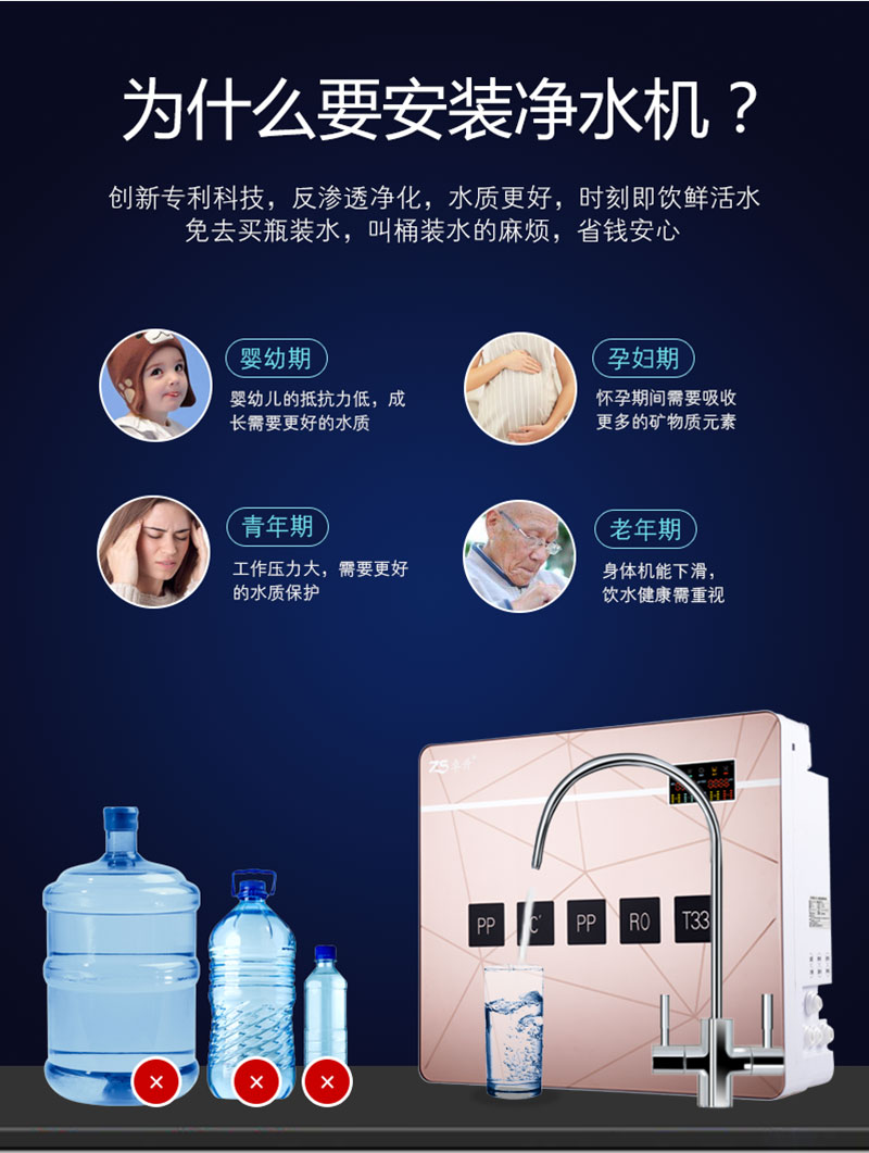 型号:ZS-RO100-B3 紫耀金 RO反渗透净水机